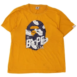AAPE BY A BATHING APE Womens Graphic T-Shirt Top UK 20 2XL Yellow Cotton