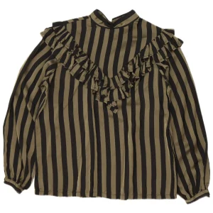 3K Womens Ruffle Front Long Sleeve Blouse Top EU 40 Medium Khaki Striped