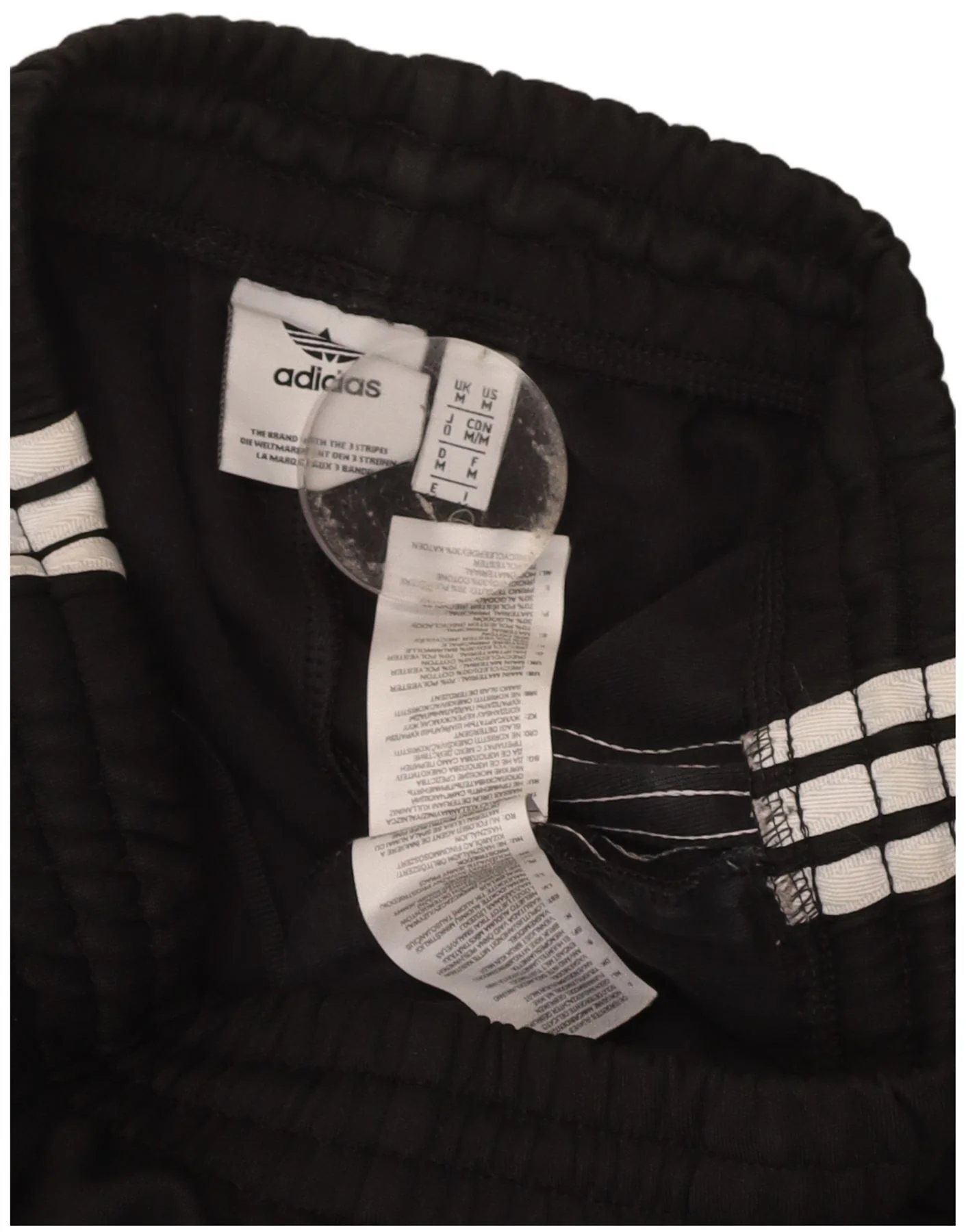- Descripción de IA: This Adidas mens tracksuit trousers are crafted from smooth black polyester knit fabric. The elasticated pull-on waist ensures a comfortable fit. Designed with a regular joggers fit, they taper neatly to cuffed ankles. Practical pockets offer everyday convenience. The iconic 3-Stripes logo provides a classic sports accent, completing the athletic style.