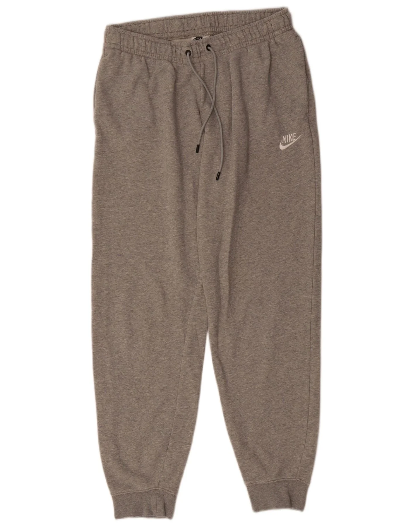 - Descripción de IA: This Nike mens tracksuit trousers joggers are crafted from soft grey cotton blend fleece. The fabric offers warmth and comfort for active wear. A regular fit ensures ease of movement. They feature an elasticated waist with an adjustable drawstring for a secure feel. Practical pockets add functionality. A subtle logo provides a signature branded accent.