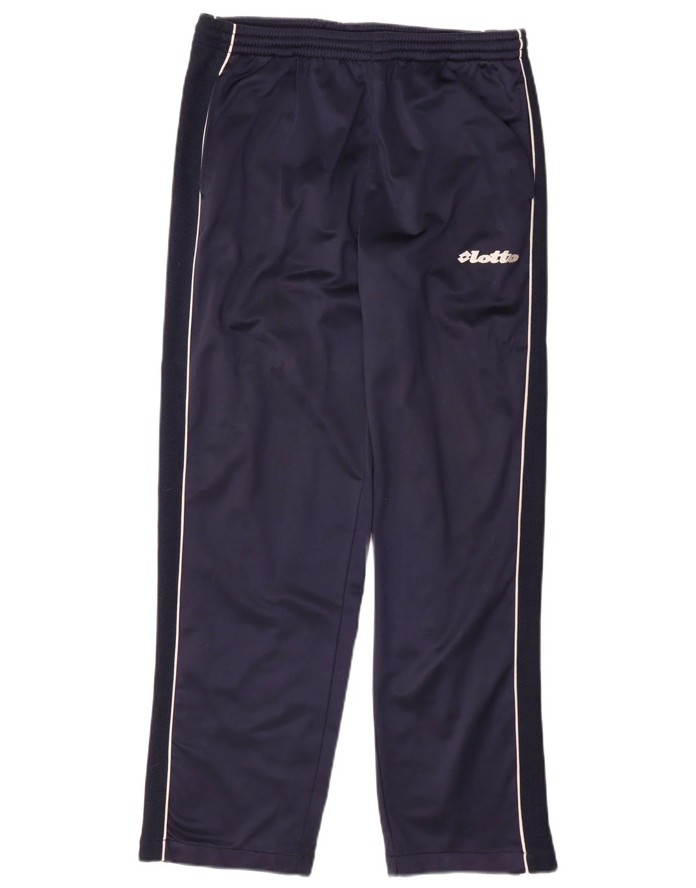 - Descripción de IA: These Lotto mens tracksuit trousers are crafted from lightweight navy blue polyester jersey. They feature a comfortable pull on elastic waist for an easy fit. The regular jogger fit offers freedom of movement. Practical pockets are included for convenience. A subtle brand logo provides a classic sports accent. Ideal for sports or casual wear, combining comfort with a clean aesthetic.