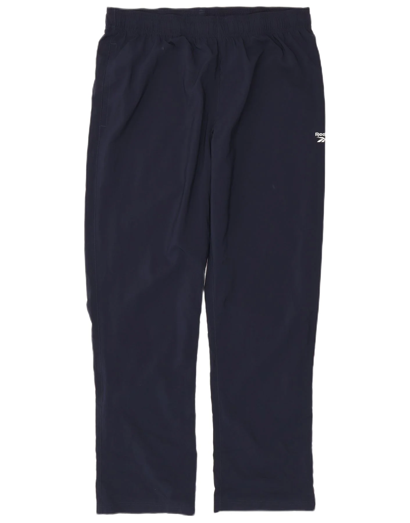 - Descripción de IA: These Reebok mens Tracksuit Trousers Joggers are crafted from 100 percent woven polyester in a deep navy blue. They feature an athletic joggers fit with an elastic waist for comfort. The pull on design ensures ease of wear. Designed for training, they are windproof and breathable. Practical pockets add functionality. This style offers a comfortable yet streamlined silhouette.