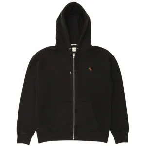 ABERCROMBIE & FITCH Sudadera con capucha y cremallera de corte relajado para hombre, talla pequeña, color negro, algodón