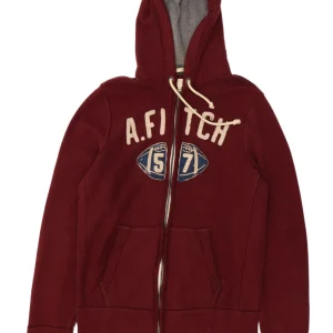 ABERCROMBIE & FITCH Mens Graphic Zip Hoodie Sweater 2XL Burgundy Cotton