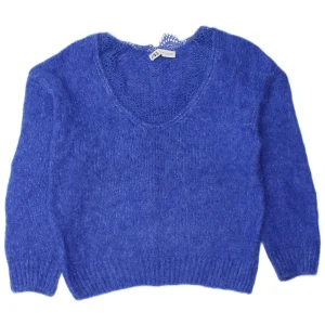 ZARA Womens V-Neck Jumper Sweater UK 14 Medium Blue Acrylic